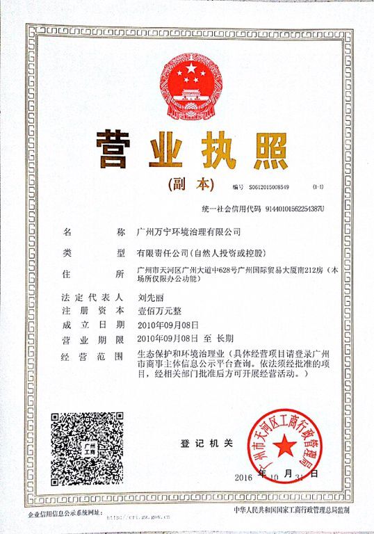 廣州萬寧環(huán)境治理有限公司前身是廣州市匡琦貿(mào)易有限公司,成立于2002年,屬香港堅信科技企業(yè)公司中國地區(qū)營運總部,負(fù)責(zé)環(huán)境治理系列產(chǎn)品的進口、技術(shù)指導(dǎo)、工程施工及招商工作。2015年日本總部成功開發(fā)出HGT超級銀光觸媒,該產(chǎn)品利用飛米技術(shù)將二氧化鈦和銀離子結(jié)合,產(chǎn)生強大的氫氧自由基,能在一分鐘內(nèi)凈化空氣。我公司作為HGT品牌中國營運總部,獨家銷售最新一代頂尖技術(shù)光觸媒產(chǎn)品,新產(chǎn)品徹底去除甲醛、強效殺...